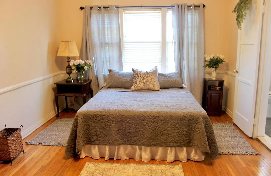 Along with coffee and tea making facilities, this apartment is equipped with a kitchenette that includes a microwave oven, a fridge, and kitchenware. The apartment is next to Fairfax & 18th bus station. There is a sunny patio with the garden view.